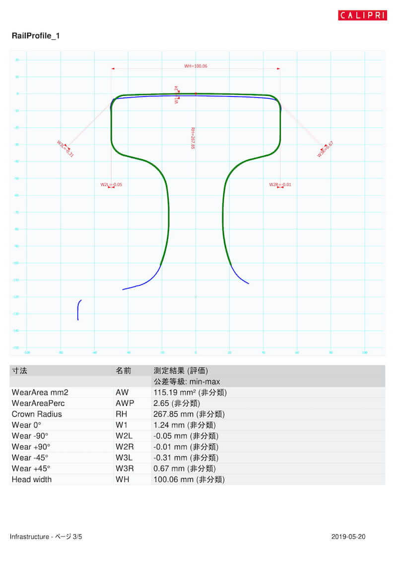 レール・軌条断面形状計測を規格値と比較し摩耗度合いを計測!