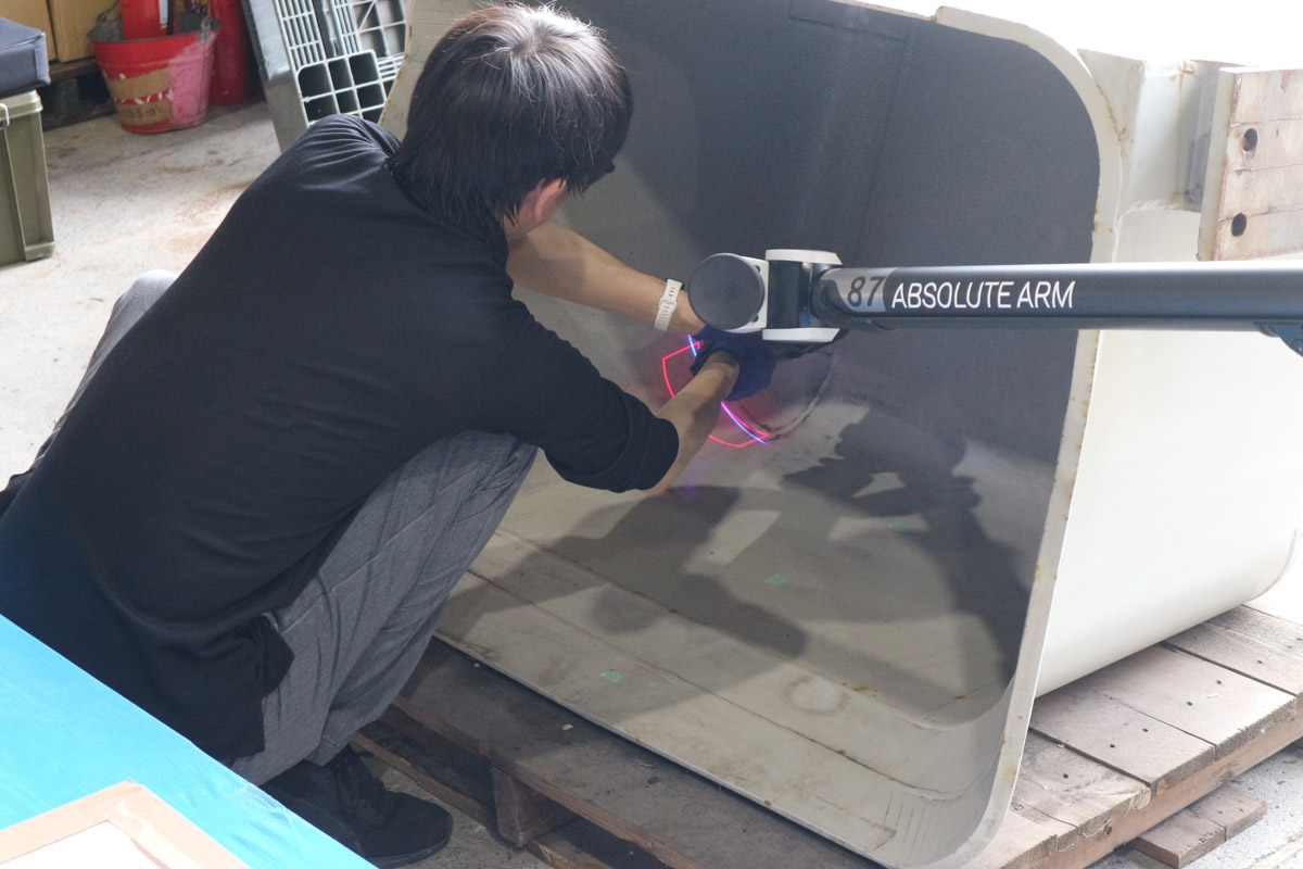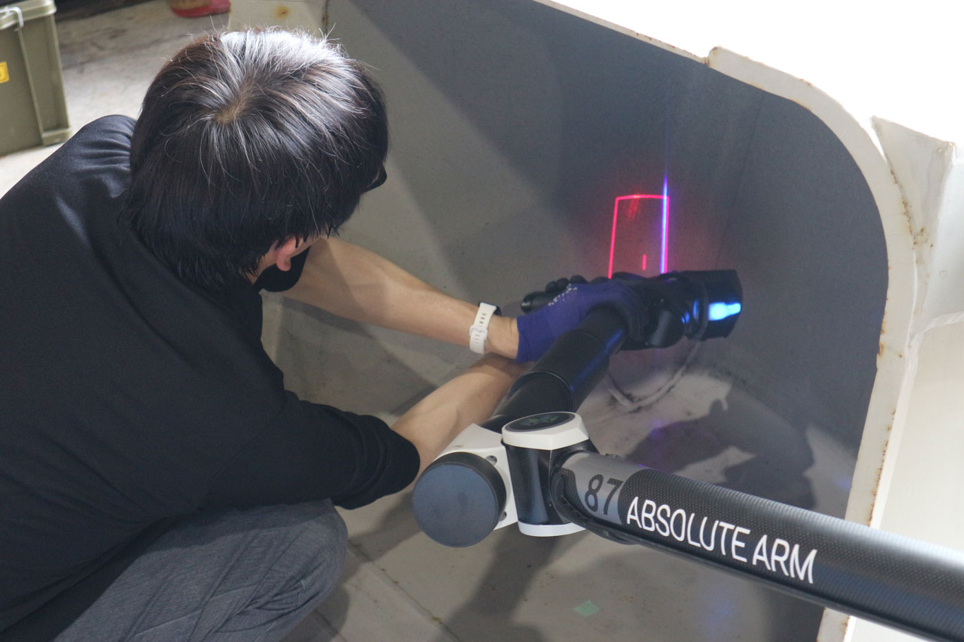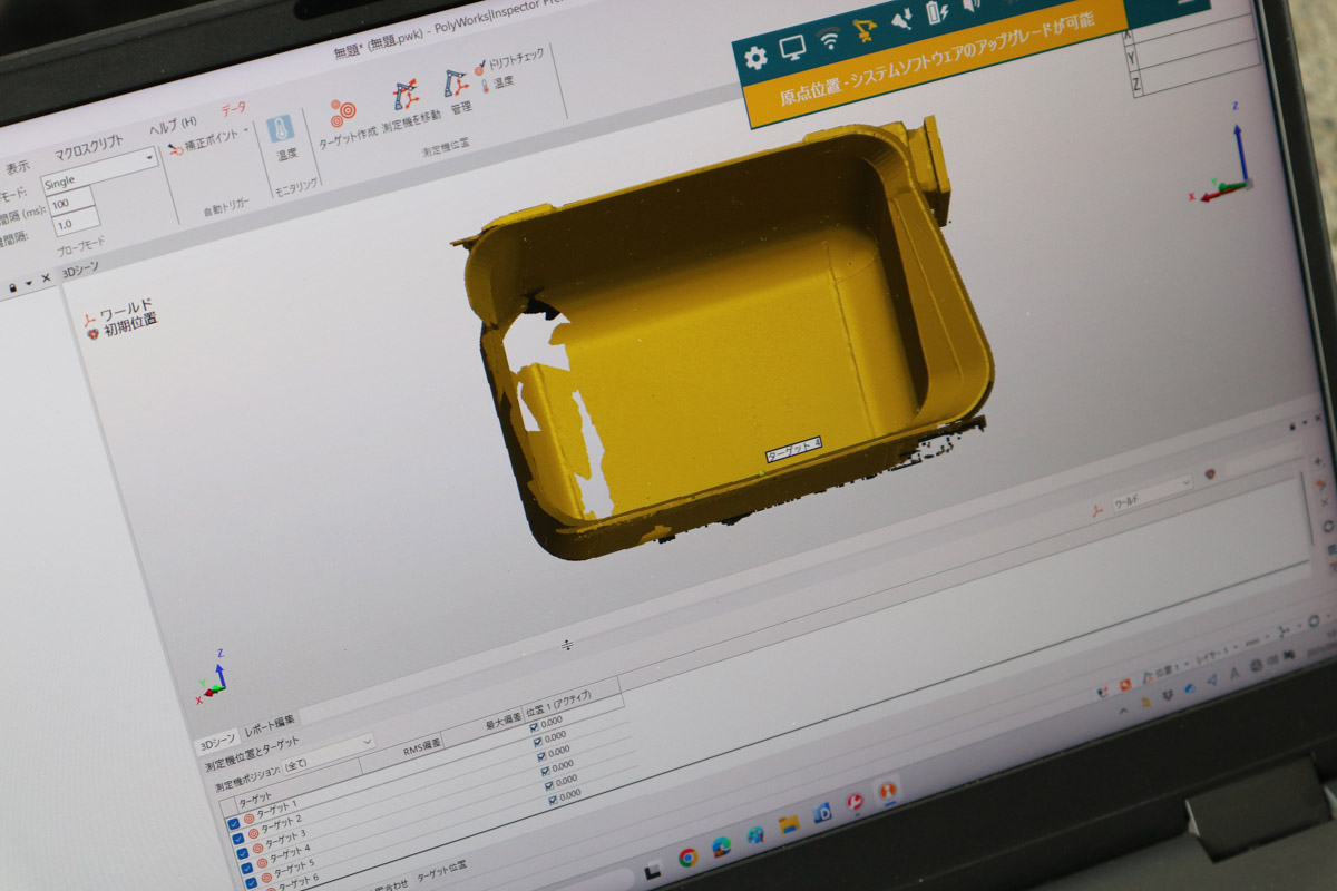 そのため今回は、3Dスキャナによるレーザー計測を行い、バケットのリバースエンジニアリングを行いました。