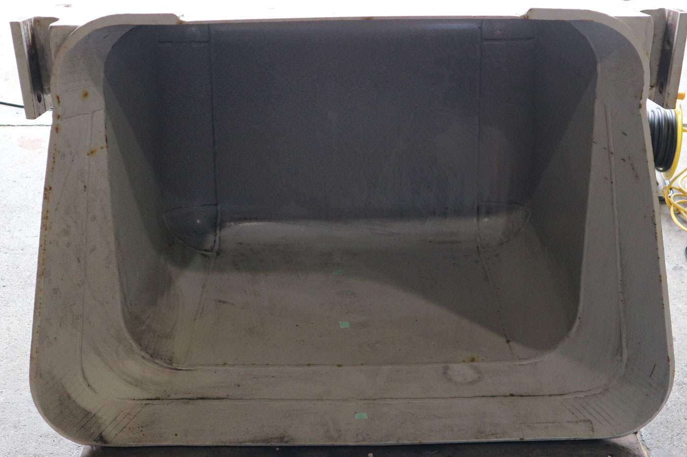 バケットはR部分も多く、全体の位相関係を手動で測定するには複雑な形状をしています。また、長年使用されてきたバケットは、内部の摩耗や変形が進み、正確な寸法が不明な状態になっていました。設計図も残っておらず、従来の方法では新規製作や補修が困難でした。