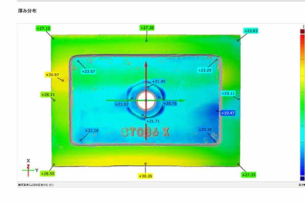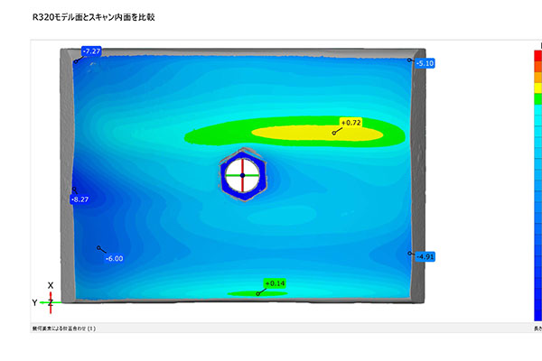 ノギスやメジャーなどの手計測では把握しきれない、摩耗による複雑な凹凸や曲面形状も正確に数値化しました。
